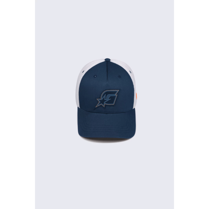 La casquette trucker BILLY STAR est un modèle uni. L’avant est orné d’un patch en silicone et feutrine ton sur ton, surpiqué de manière contrastée pour répondre au patch silicone posé sur le côté. Les côtés et l’arrière de la casquette sont en mesh pour une légère ventilation, renforcée par des œillets respirants brodés.