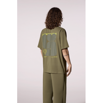 Le T-shirt TAYC affiche une silhouette épurée et moderne avec sa coupe droite, son col rond classique et ses manches courtes. Confectionné en jersey 100 % coton, il offre douceur et respirabilité au quotidien. Son imprimé contrasté au dos crée la surprise, tandis qu’un marquage graphique discret sur le devant signe la pièce avec caractère. Un essentiel revisité, minimaliste à l’impact visuel fort.