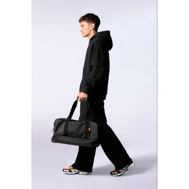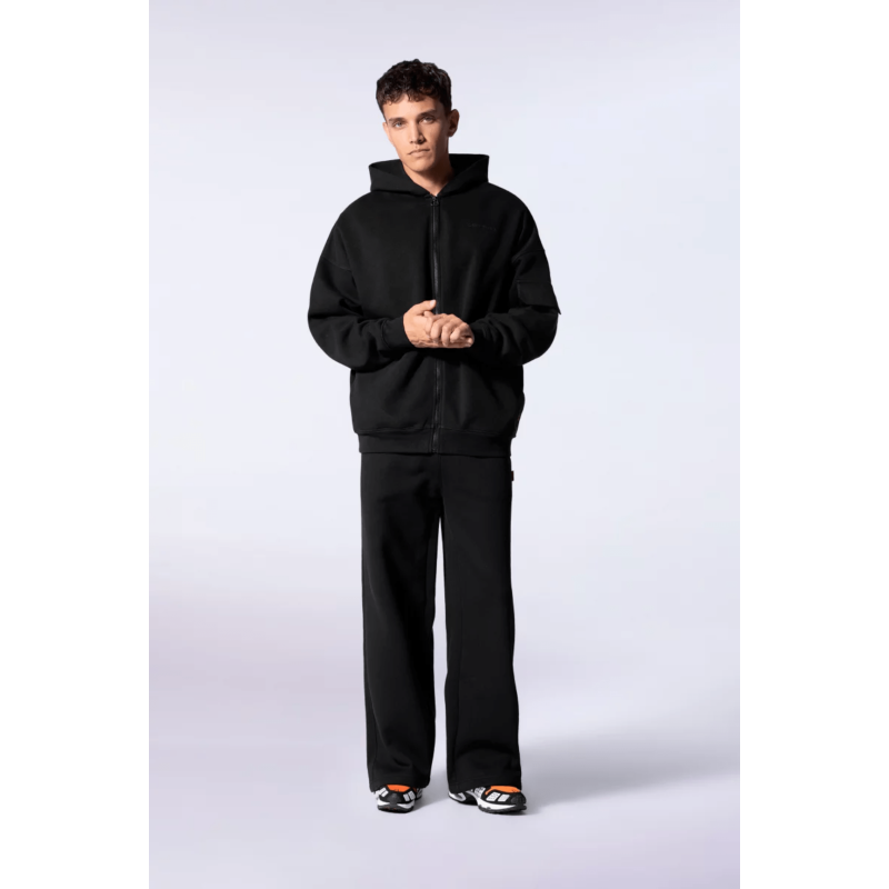 Le pantalon de jogging MARIO est confectionné en molleton. Il possède deux poches cargo plaquées à rabat sur les cuisses. Deux poches invisibles supplémentaires sont insérées sur le côté. Un poche à rabat est plaquée sur le dos, où le patch en silicone de la marque ton sur ton est apposé. La ceinture et le bas de jambe sont confectionnés en rib élastiqué. La taille est réglable grâce aux doubles cordons de serrage unis et contrastés. Le logo de la marque est en impression ton sur ton sur le rabat de la poche côté.