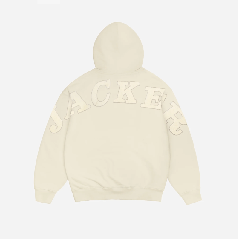 Hoodie double zip avec broderies devant et dos, travaillées en flat et en chenille.