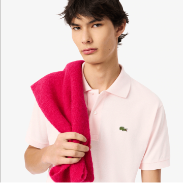 Inventeur du polo en 1933, Lacoste révolutionne le sportswear élégant et la liberté de mouvement. Ce modèle tricoté en coton et polyester mélangé présente une maille finement côtelée. Détails iconiques et finitions soignées, il conserve les codes qui ont fait sa légende.